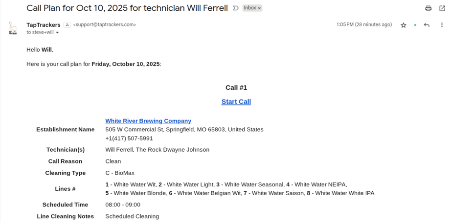If there are two techs linked to a call plan, only one will have a Start Call button/link.