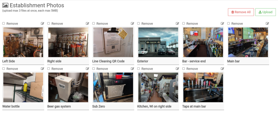 The bottom section is Establishment Photos. Here you can upload images of the establishment that will help your techs better understand the system. Examples of some establishment photos: