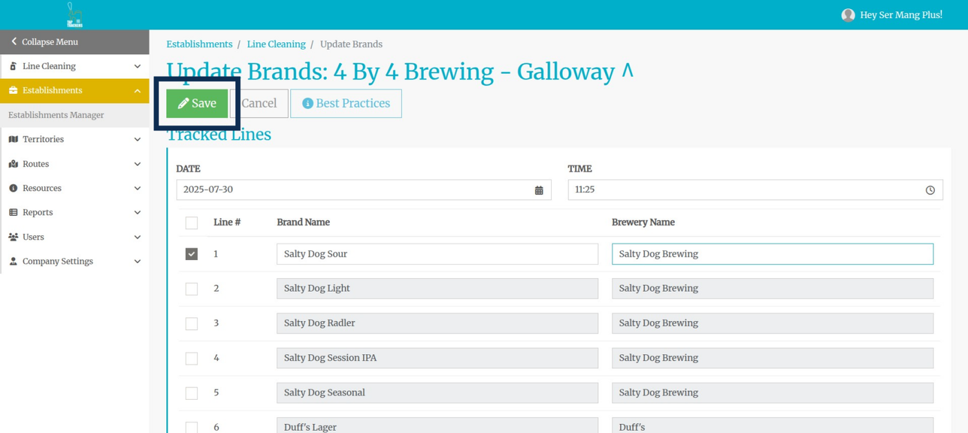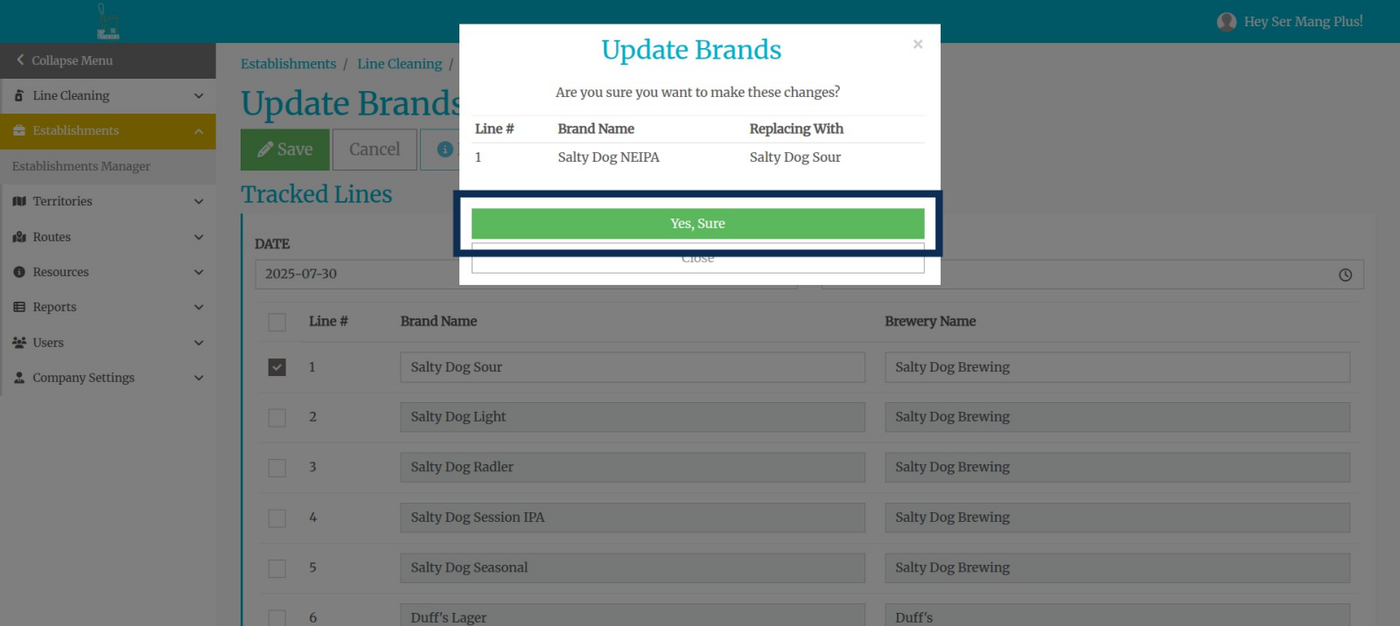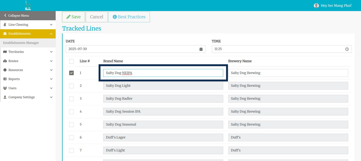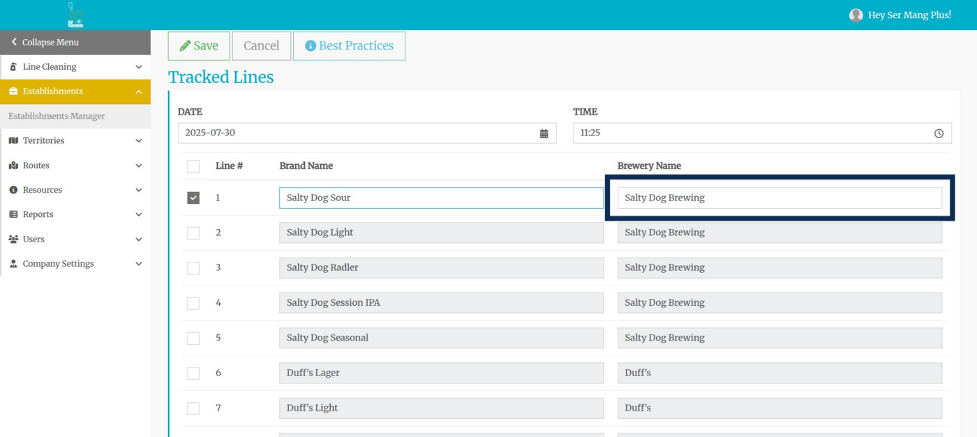 Step 7: Select the brewery from the drop-down list. NOTE the difference between tracked and non-tracked breweries.