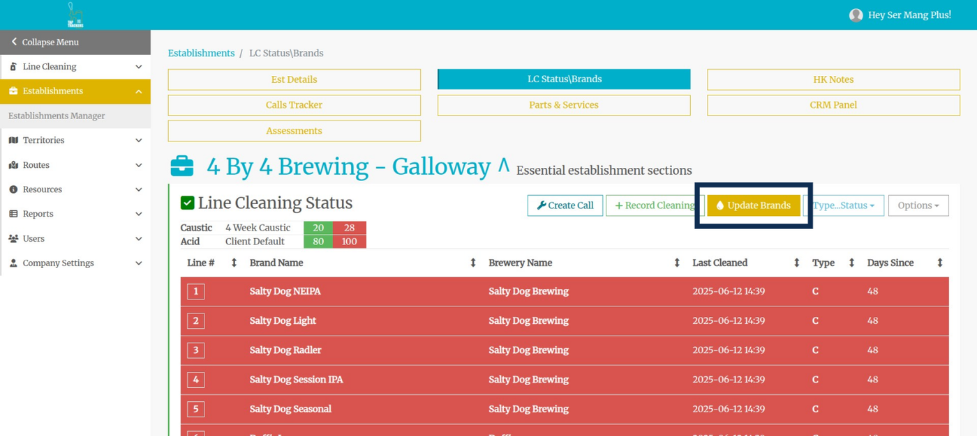 Step 2: Navigate to the establishment you'd like to update the brands for. Click on the establishment name.