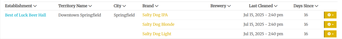 The All Line Cleaning Status page is the page that you should be looking at every day. This page outlines the status for each of your lines, letting you know which ones are up-to-date, due for a cleaning, or past due for a cleaning.